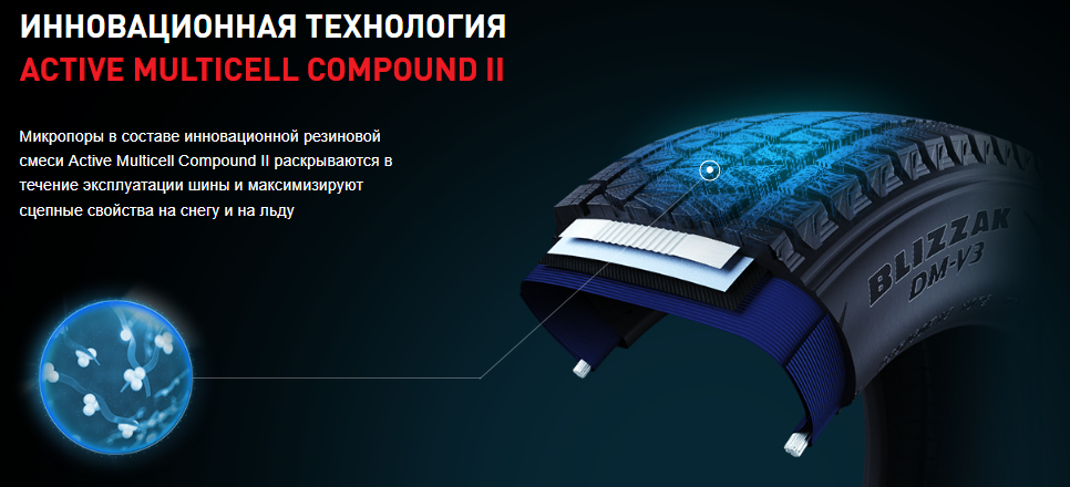 - пористая резиновая смесь усиливает сцепные свойства на мокрой и обледеневшей поверхности;